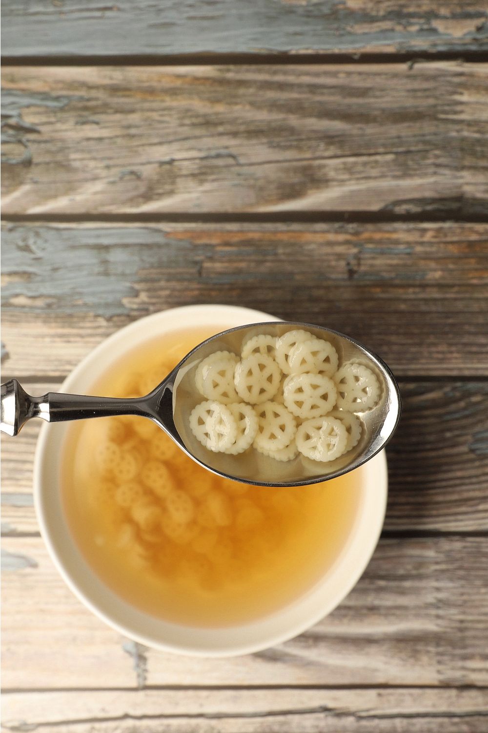 Nos vermicelles d’épeautre* en forme de croisillons apportent une touche charmante et délicate à vos soupes et bouillons. Leur texture tendre et leur goût naturellement doux permettent d’ajouter du volume sans alourdir vos préparations. Sans œufs, ils conviennent également aux personnes suivant une alimentation végane.